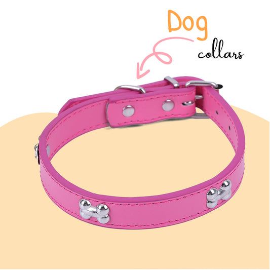 PETSARY Leather Dog and Cat Collar with Cute Bone Decoration Patterns