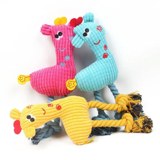 PETSARY Plush Deer Shape Animal Dog Tug Toy Fluffy Molar Teeth Chew Toy