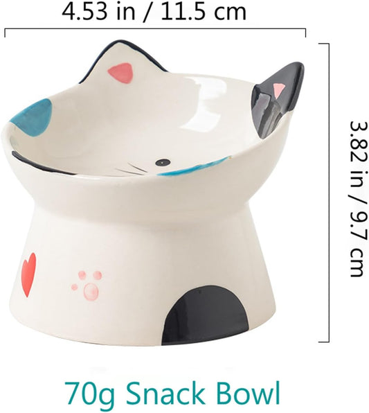 PETSARY Cat Face Shape Ceramic Raised Cat Food Bowl with 1 Pcs