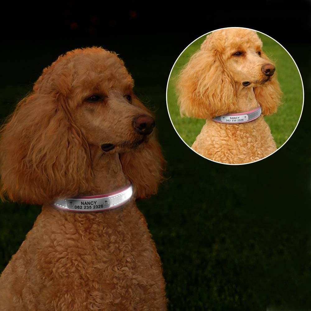 - BE VISIBLE DAY OR NIGHT: Our high-visibility strong nylon dog collar is equipped with a highly reflective stainless steel pet ID plate, ensuring your pet stays visible and safe in any lighting conditions. The best part? It's scratch-proof for long-lasting visibility.