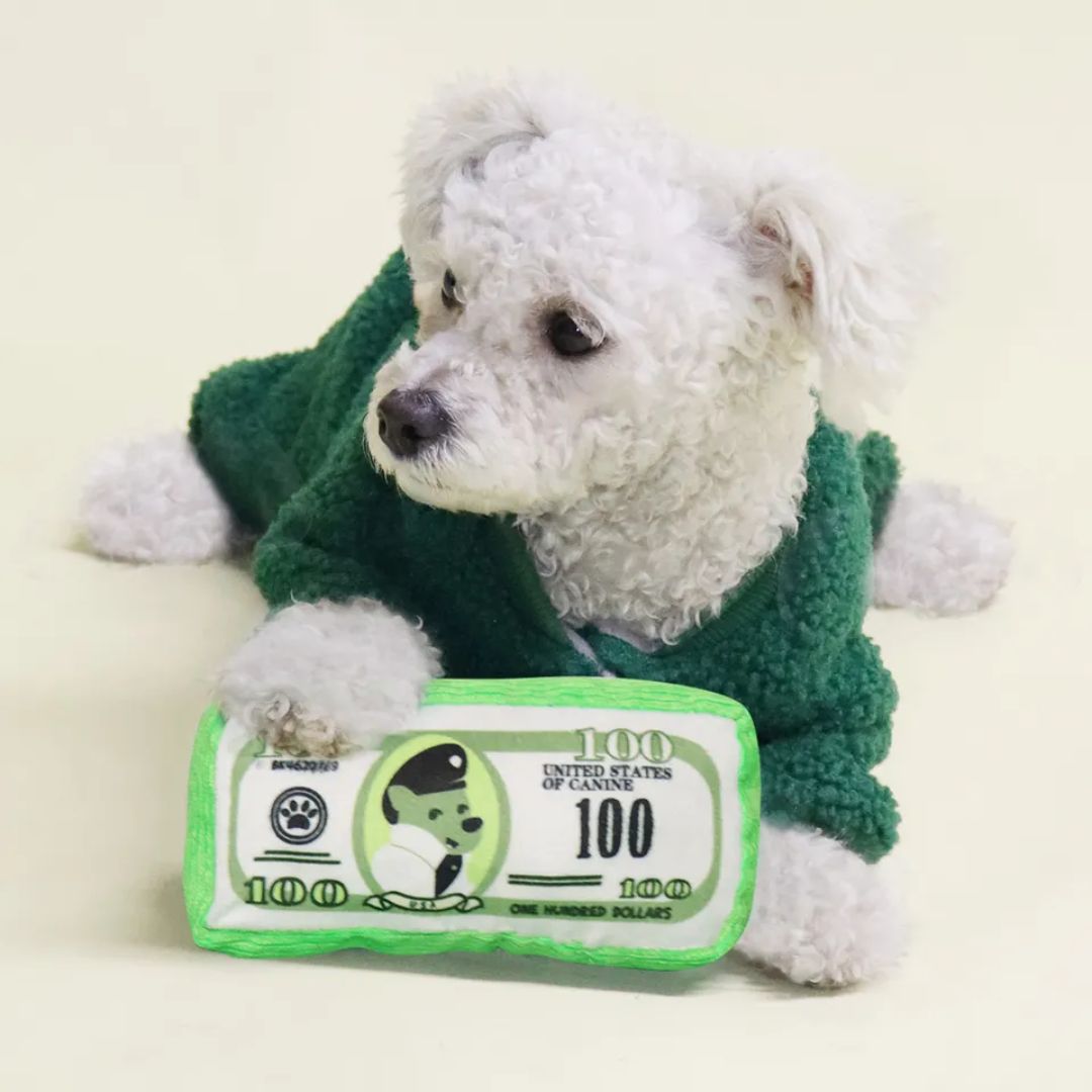 Make your dog or cat the trendsetter of playtime with our Fun Money plush toy featuring a squeaky money design. Here's why it's the perfect addition to your pet's toy collection: