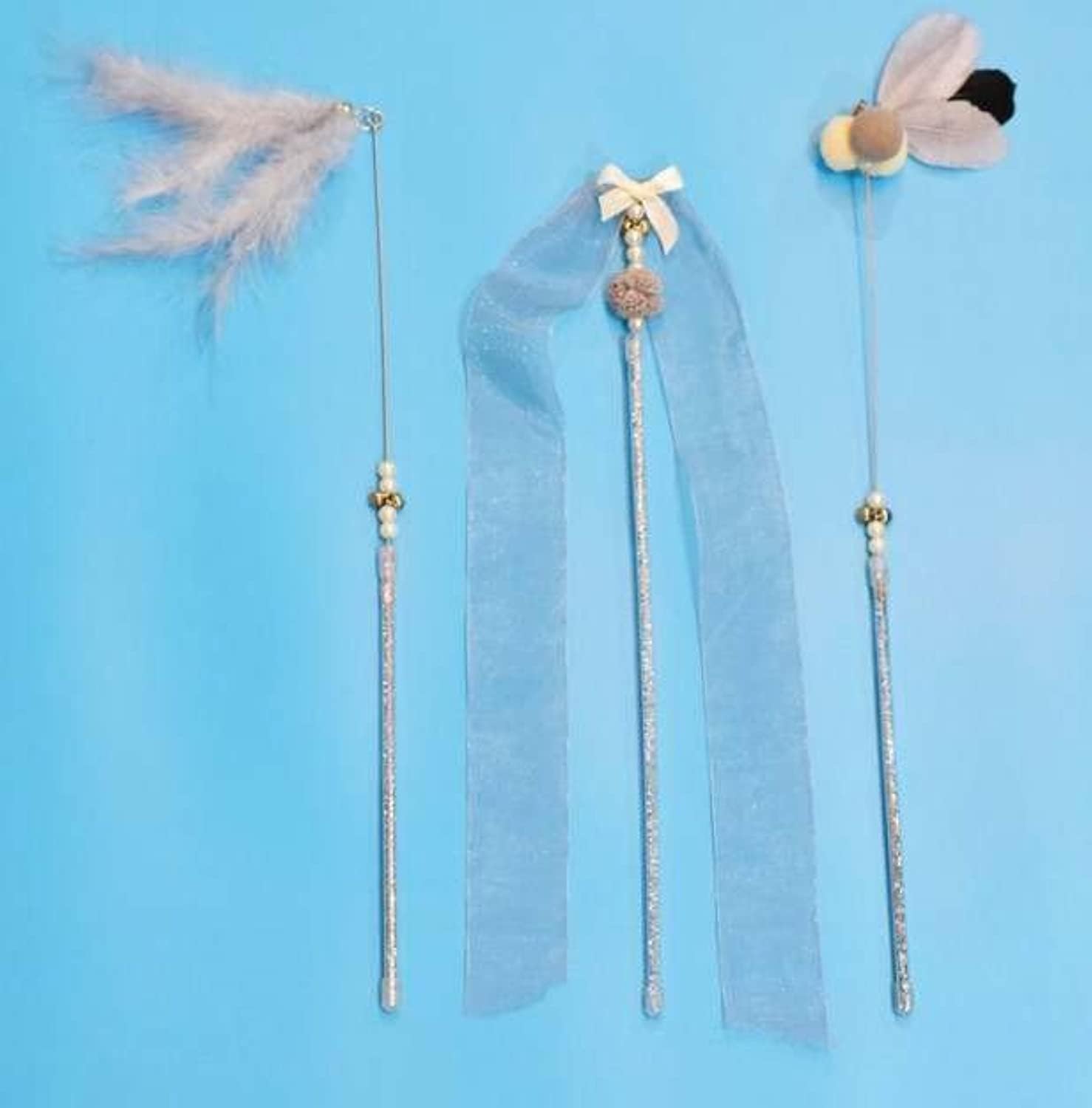 Grey Feather Elegance: The third teaser showcases small grey feathers that flutter and dance with every movement. The subtle shimmer of glitter transforms this feather teaser into an elegant play accessory, ensuring your cat stays engaged and entertained.