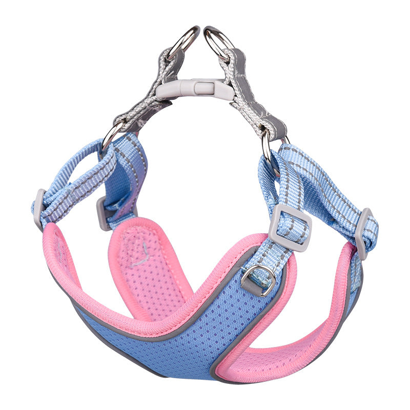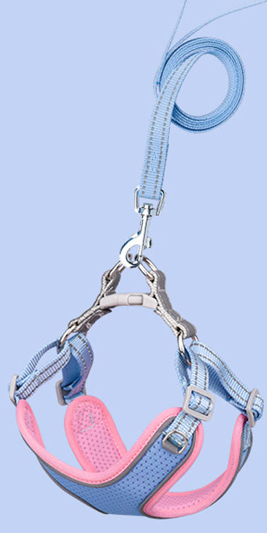 Step-in Flex Dog Harness & Reflective Leash Combo Set (Pink & Blue)